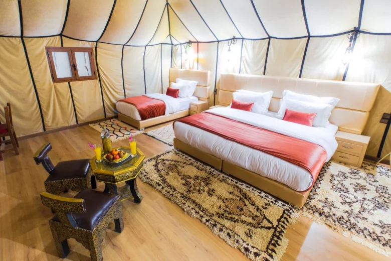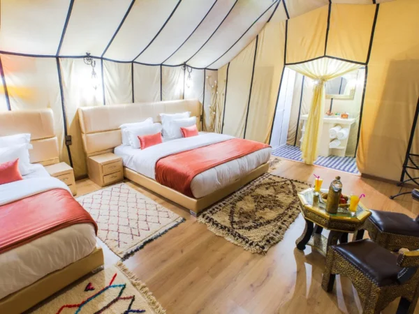 Our Triple Luxury Desert Tent is designed to offer both flexibility and comfort in the heart of the Merzouga desert. The tent is available in …