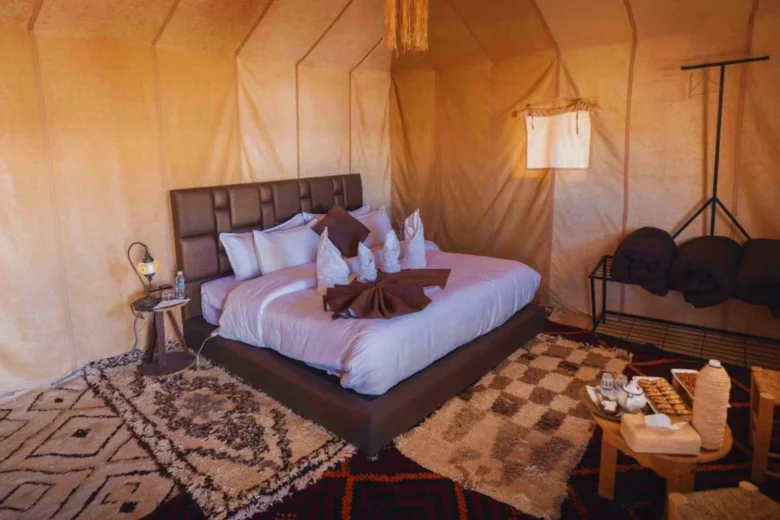 Our Single Luxury Desert Tent is thoughtfully designed for solo travelers seeking comfort, privacy, and tranquility in the heart of the Merzouga desert. The tent …