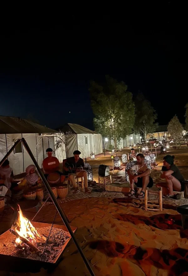 Experience the rhythms of Berber music around the campfire, celebrating Saharan heritage under a star-filled desert sky.