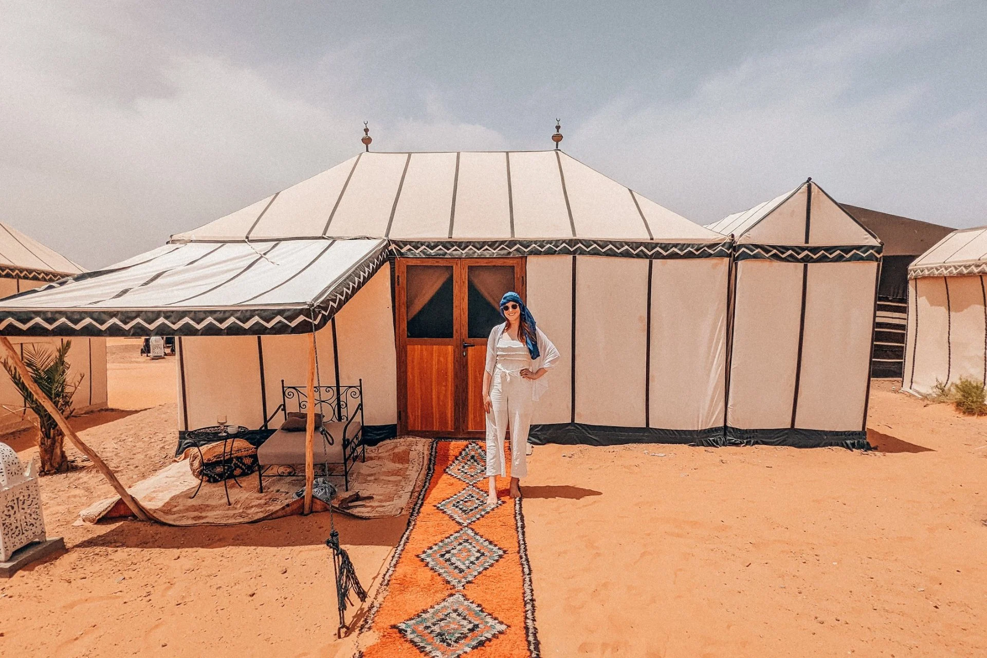 We reach our luxury or standard desert camp, where we are welcomed with traditional hospitality. A freshly prepared Moroccan dinner is followed by Berber music around the campfire, creating an unforgettable evening beneath a sky filled with stars. Overnight in a private desert tent offers comfort, silence, and an authentic Sahara experience.