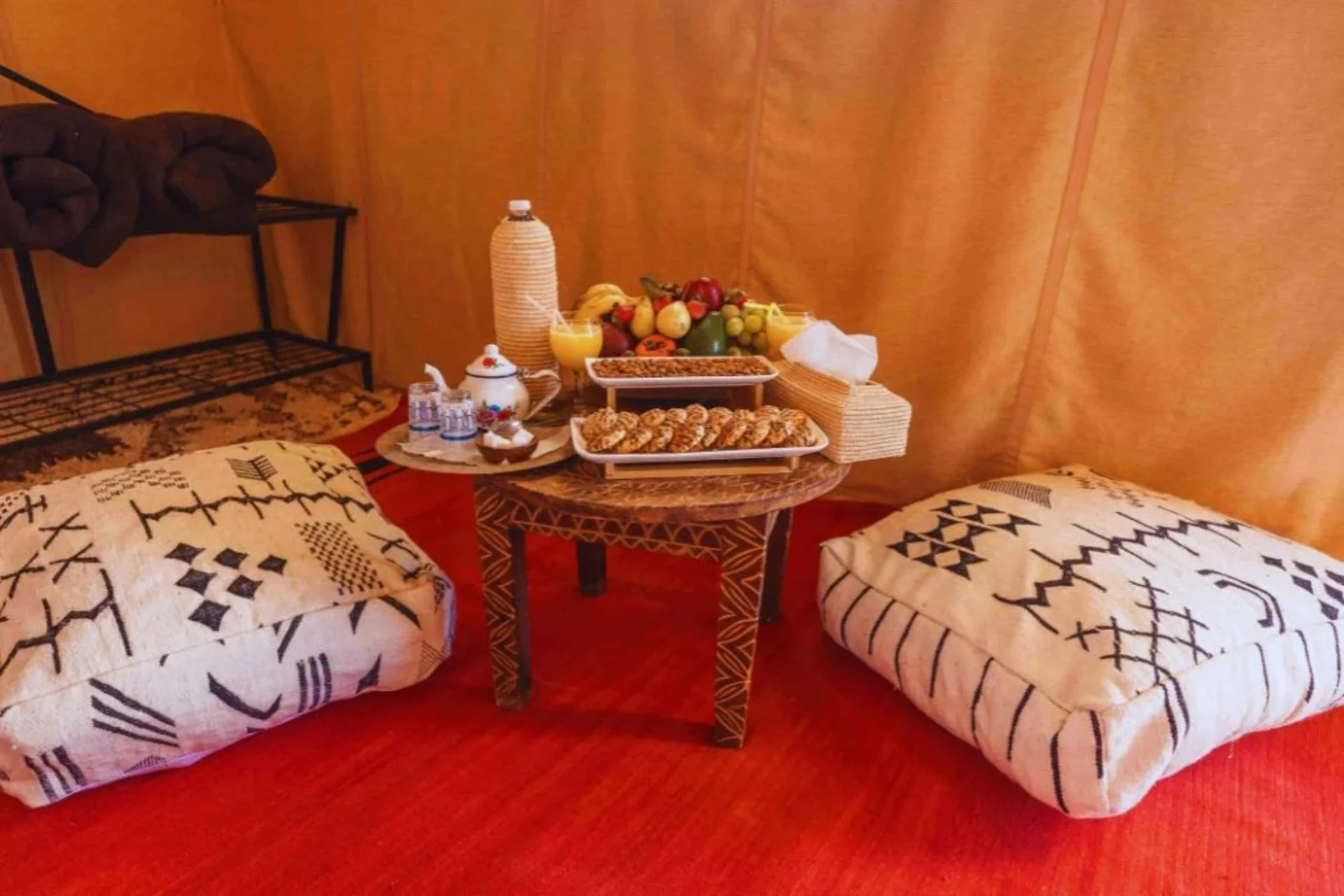 Equipped with a private shower and WC with hot water and electricity, this tent ensures a comfortable and convenient stay in the heart of the Sahara. Blending modern amenities with authentic desert charm, it is the ideal retreat for families seeking both adventure and relaxation among the golden dunes of Merzouga.